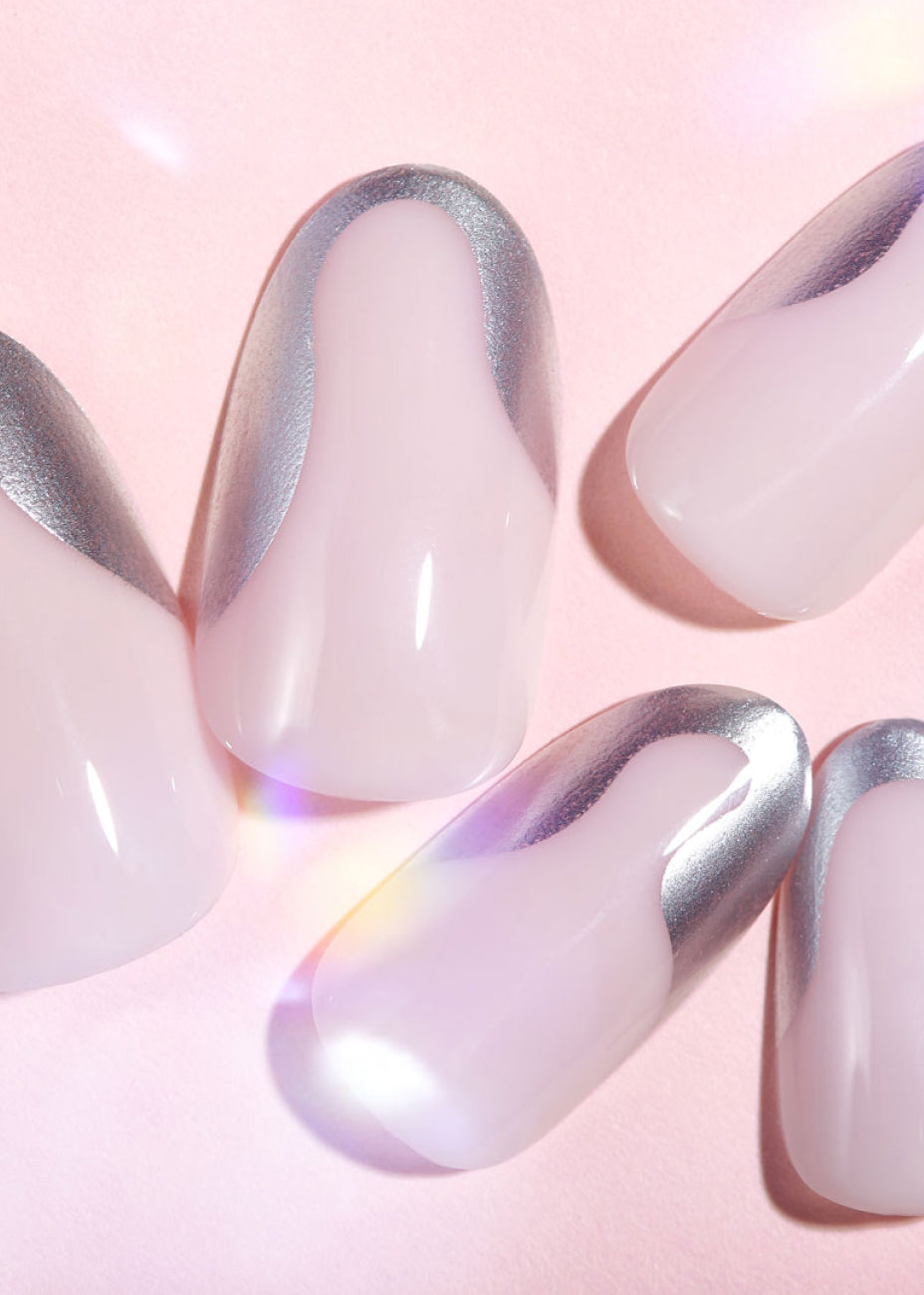 Apply 1 drop of the included glue onto the backside of the false nail and 1 drop onto your nail (be careful not to over glue). Position the nail along the cuticle line and press down firmly on the nail bed for 20 seconds or until bonded.